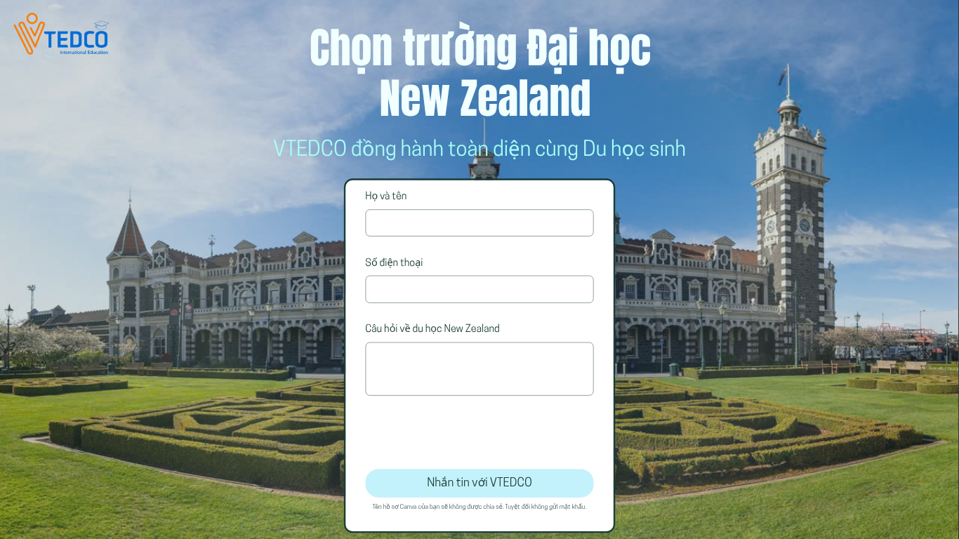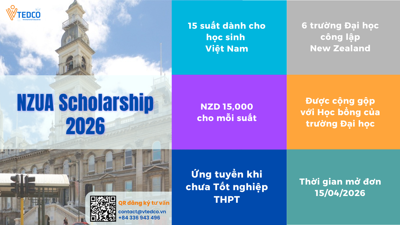 Bạn có học lực từ 8.5 GPA trở lên? Bạn đang chuẩn bị hoặc đã có IELTS 6.0? Bạn muốn bắt đầu hành trình đại học tại một trong những đất nước đáng sống nhất thế giới? Kỳ nhập học tháng 02/2027 đang đến gần, liên hệ với đội ngũ hỗ trợ du học VTEDCO ngay hôm nay để được tư vấn miễn phí về lộ trình Học bổng NZUA 2026.